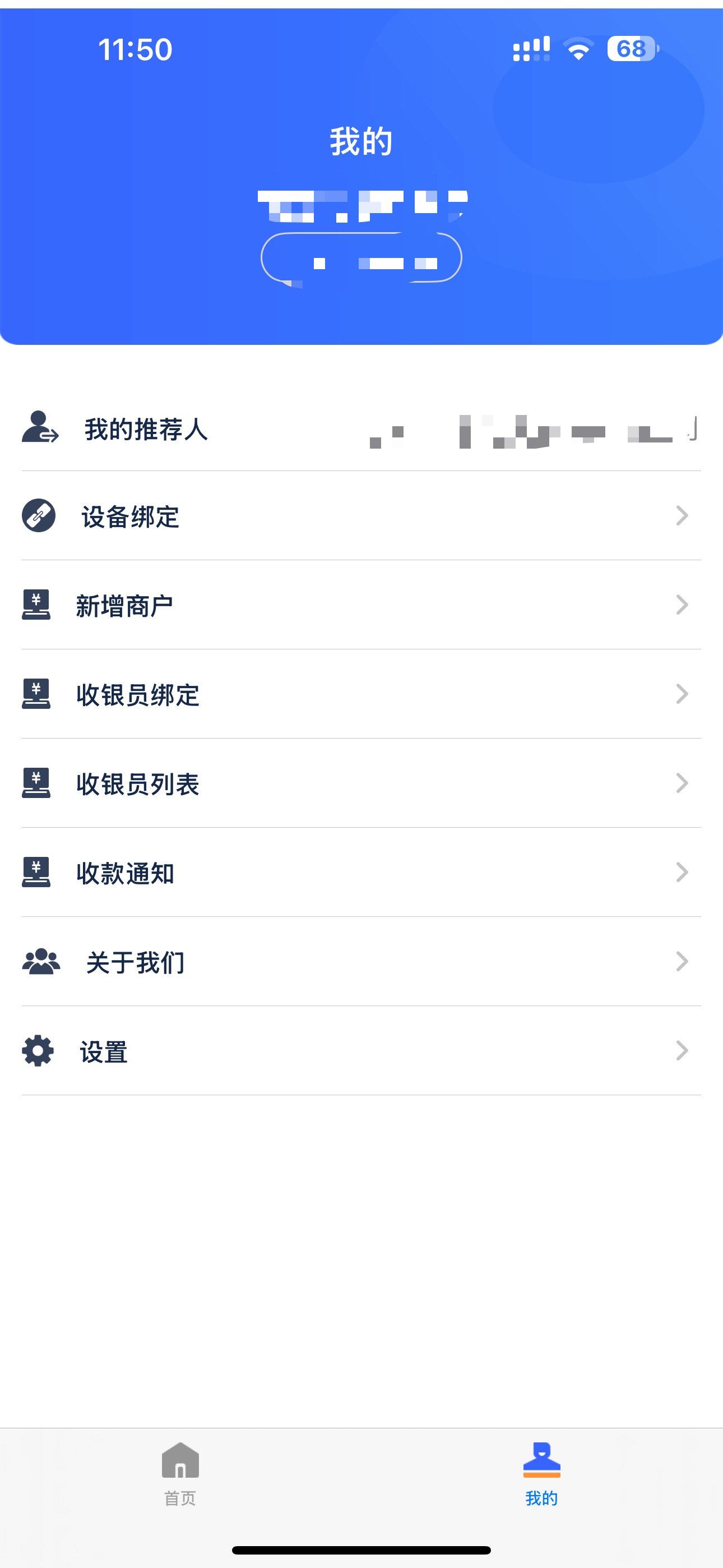 这个“顺卡助手”个人资料页面,基本上没啥特别的,设备绑定这块,不需要过多的添加,因为在开通的时候,他就以经把收银码添加好了,新增商户这里,是在商户不够用的情况下,可以添加多个商户,也可以轮循使用,收银员绑定这个就是可以开店员,店员能登陆查账方便,收银员列表这块主要是查看名下的店员,收款通知,就是起到一个提示作用,别的没啥。